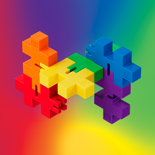 Shape your very own elastic world of bubblegum colors. With HEXEL, you can experiment with colors, shapes, and geometry. Move around the 6 BIG pieces and discover all sorts of creative structures you come up with yourself!