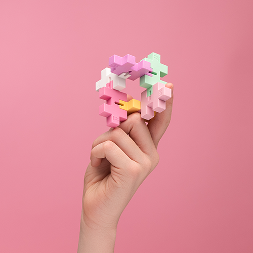 HEXEL is your trusty pocket-sized companion. A fidget toy consisting of 6 BIG pieces in the most delicious bubblegum colors. An elastic cord between them allows you to move them in all sorts of patterns. Channel your restlessness and energy into something productive, experiencing bubbly fun with Hexel Bubblegum.